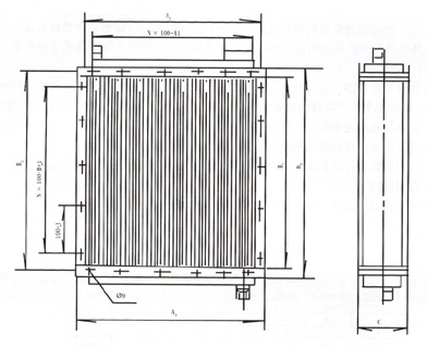 SRL型散熱器在順氣流方向分二排管與三排管排列,其型號舉例如下: SRL-5×5/2——順氣流方向二排管交叉排列。 SRL-5×5/3——順氣流方向三排管交叉排列。
